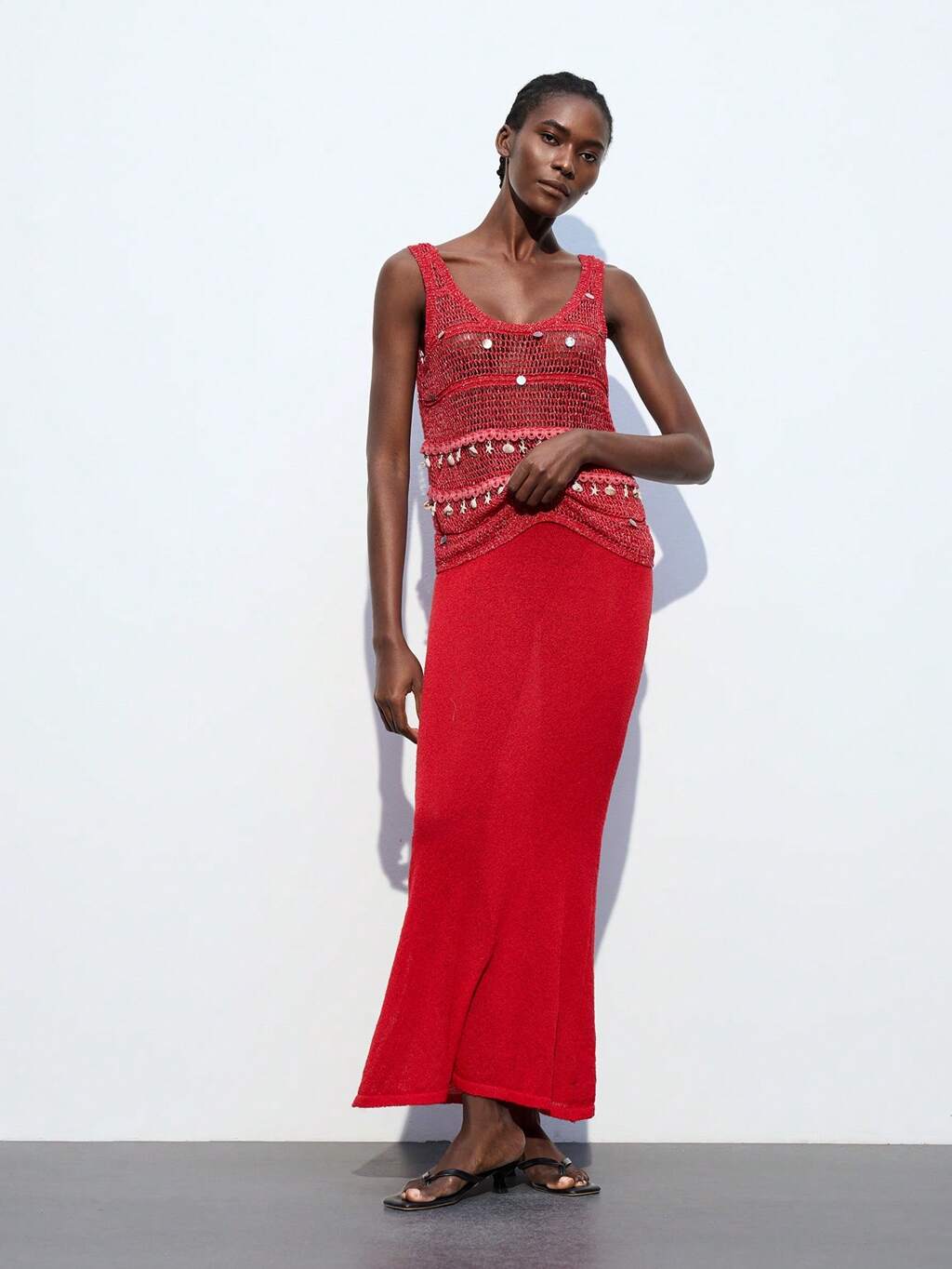 SHEIN Maija 2025년 여름 및 여름 새로운 도시적이고 현대적인 레드 니트 천공 장식 여성 스커트, 일상적인 캐주얼, 섹시하고 우아한 통근에 적합, 휴가, 축제, 파티, 크리스마스, 새해, 발렌타인데이, 올드 머니 스타일 페스티벌, 90년대 여성 보헤미안, 여름, 여름들, 컨트리 콘서트, 스트릿웨어 여성, 클럽, 선생님