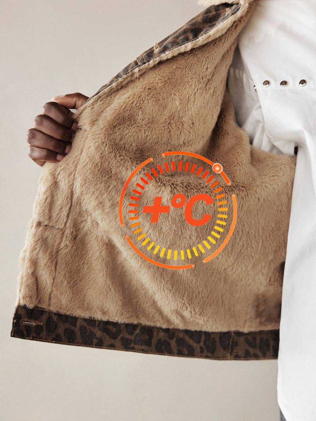 SHEIN Maija 여성용 레오파드 프린트 데님 써멀 안감 재킷 레트로 긴팔 재킷 레오파드 프린트 패턴 겨울 캐주얼 웨어
