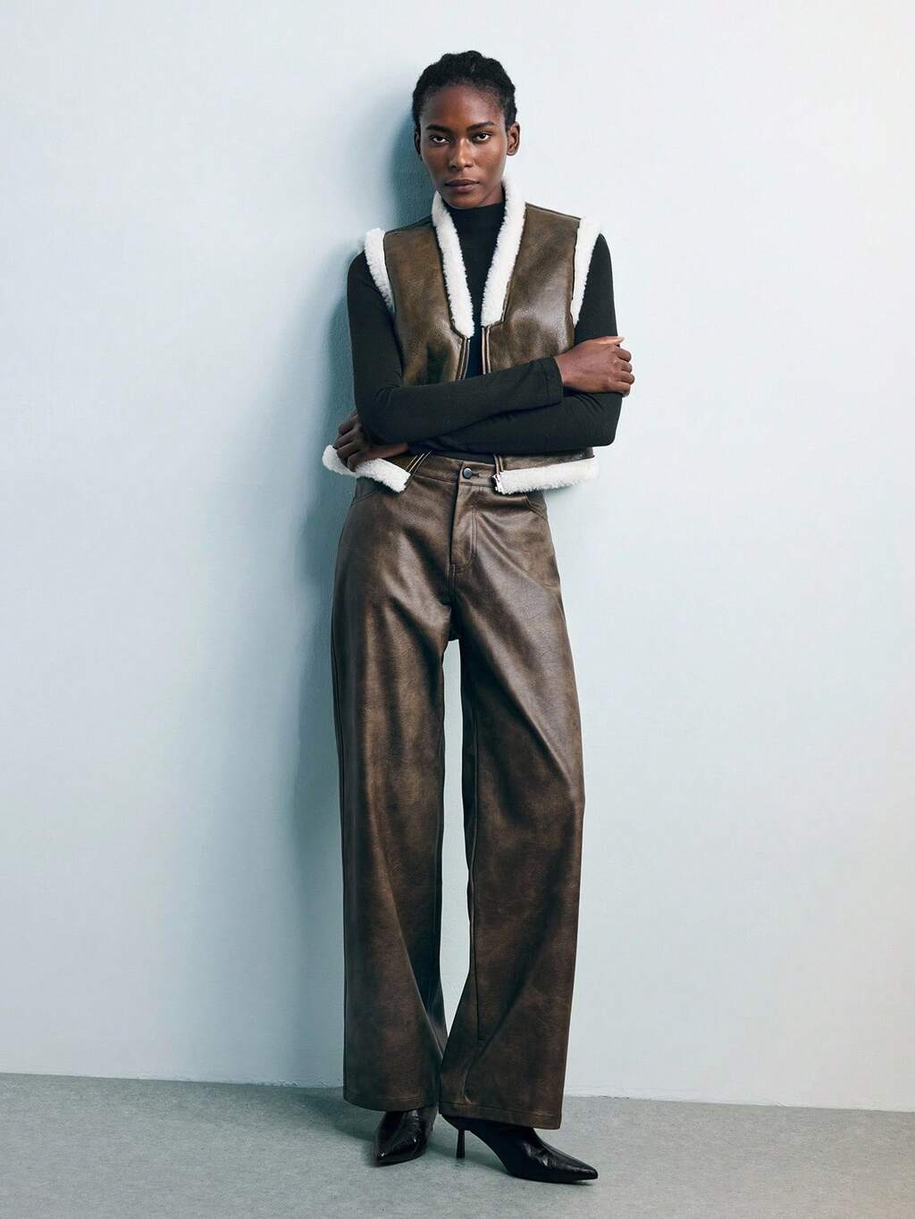 SHEIN Maija 여성용 인조 모피 칼라 트림 민소매 조끼, 가을 겨울 여성용 가을 여성용 브라운 올드 머니 브라운 캐주얼 블라우스 여성용 겨울 여성용 추수 감사절 여성용 파티 할로윈 의상 여성용 새해 여성용 아늑한 가을 및 겨울 여성용