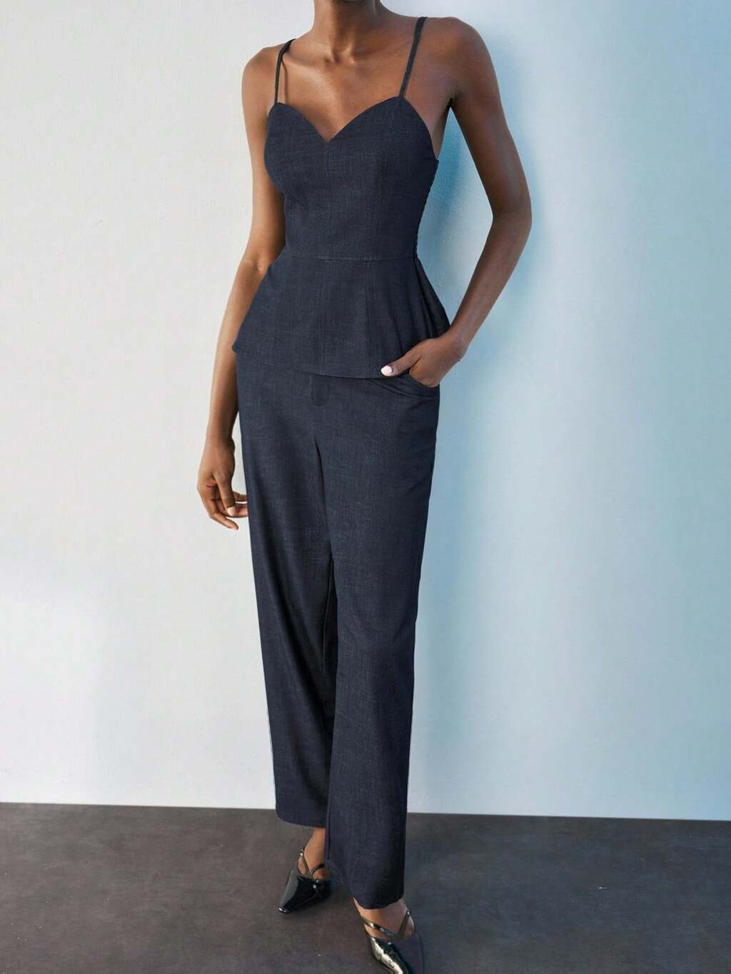 SHEIN Maija 여성 캐주얼 솔리드 컬러 캐미솔 & 팬츠 투피스 세트, 여름