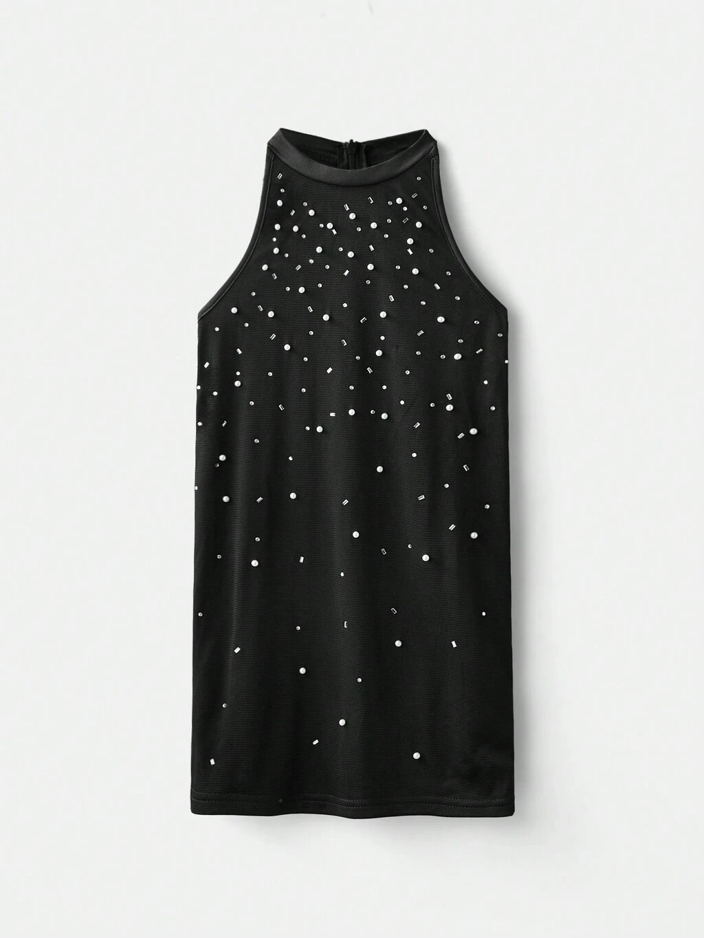 영걸 캐주얼 비즈 민소매 미니 드레스