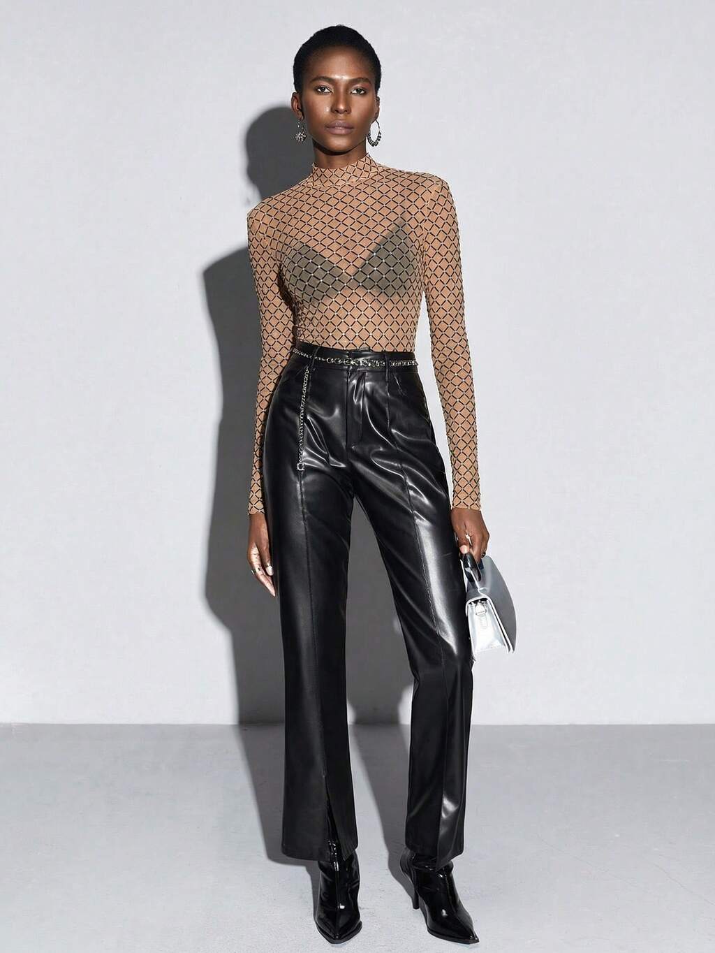 SHEIN Maija Women's Rhinestone Detail Sheer Mesh Bodysuit