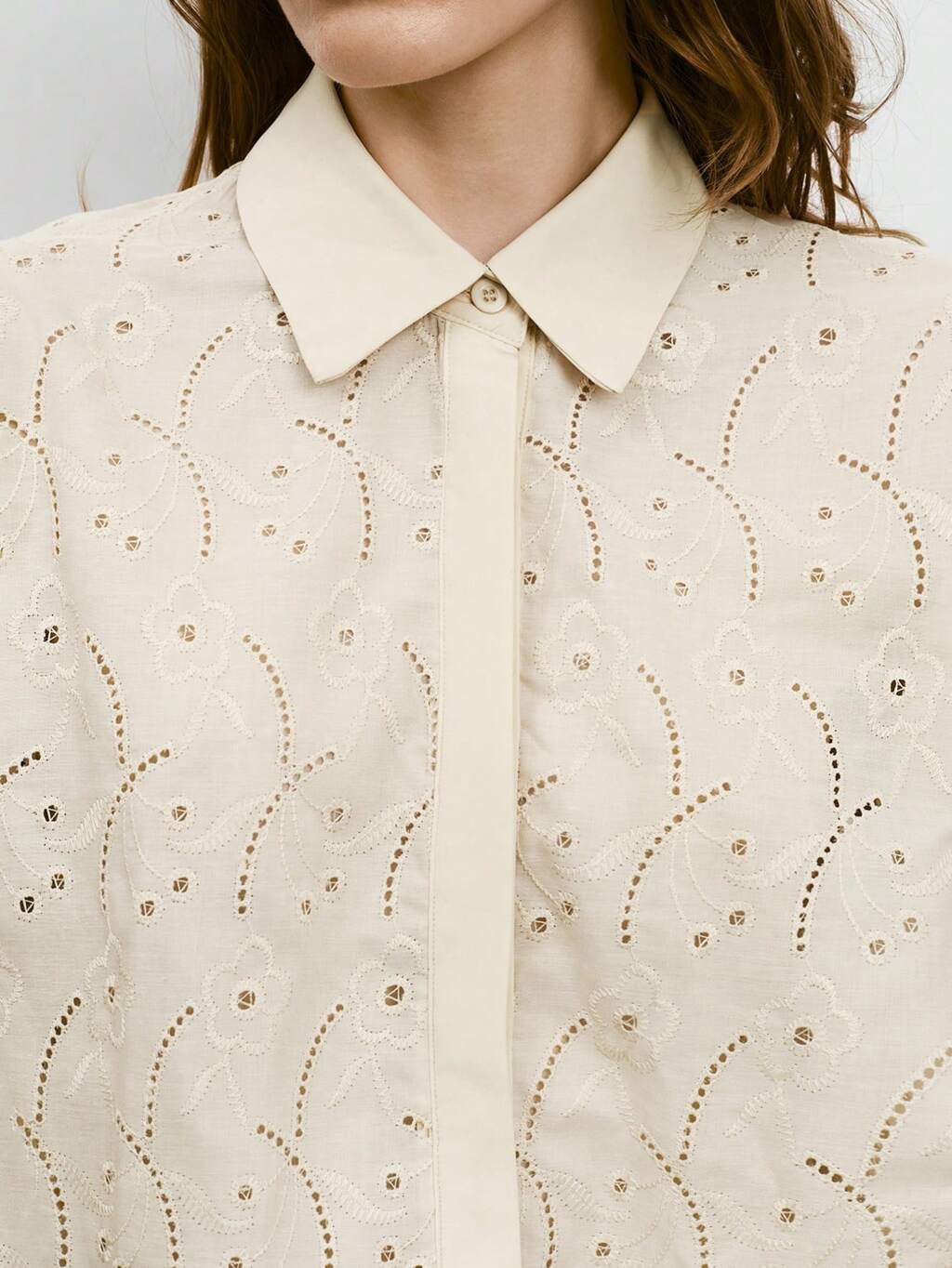 SHEIN Maija Elegant Women's Apricot Long Blouse With Delicate Floral Eyelet Embroidery, Woven Fabric, Long Sleeves, Collared Neckline, And A Relaxed Casual Fit