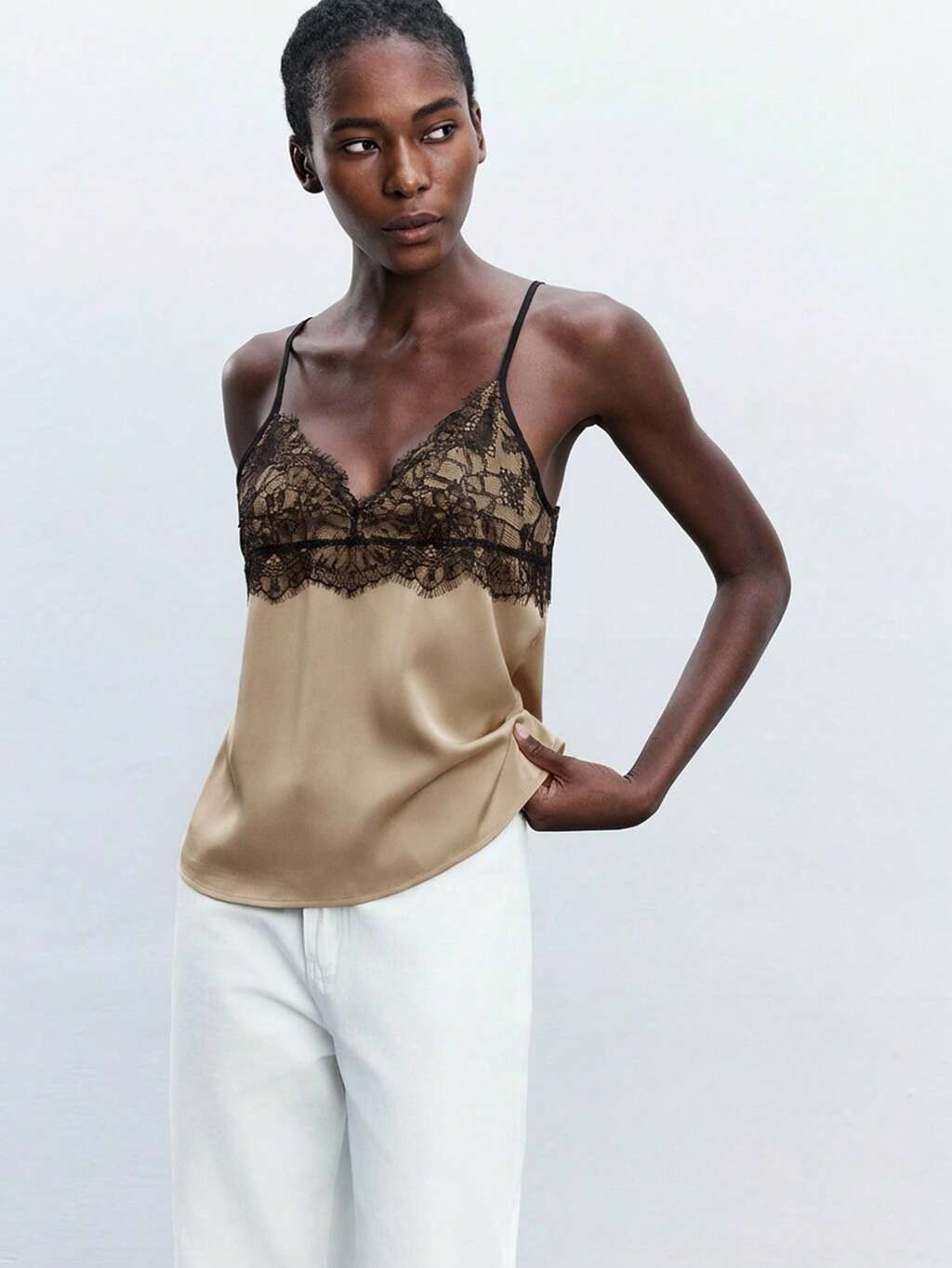 SHEIN Maija Women's Lace Collar Decor Camisole Top, Versatile For Urban Commute, Business Casual, Elegant For Dates, Weddings, Vacations