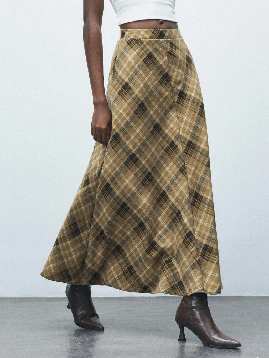 SHEIN Maija Women's Plaid Elegant Commuter Fashion A-Line Skirt