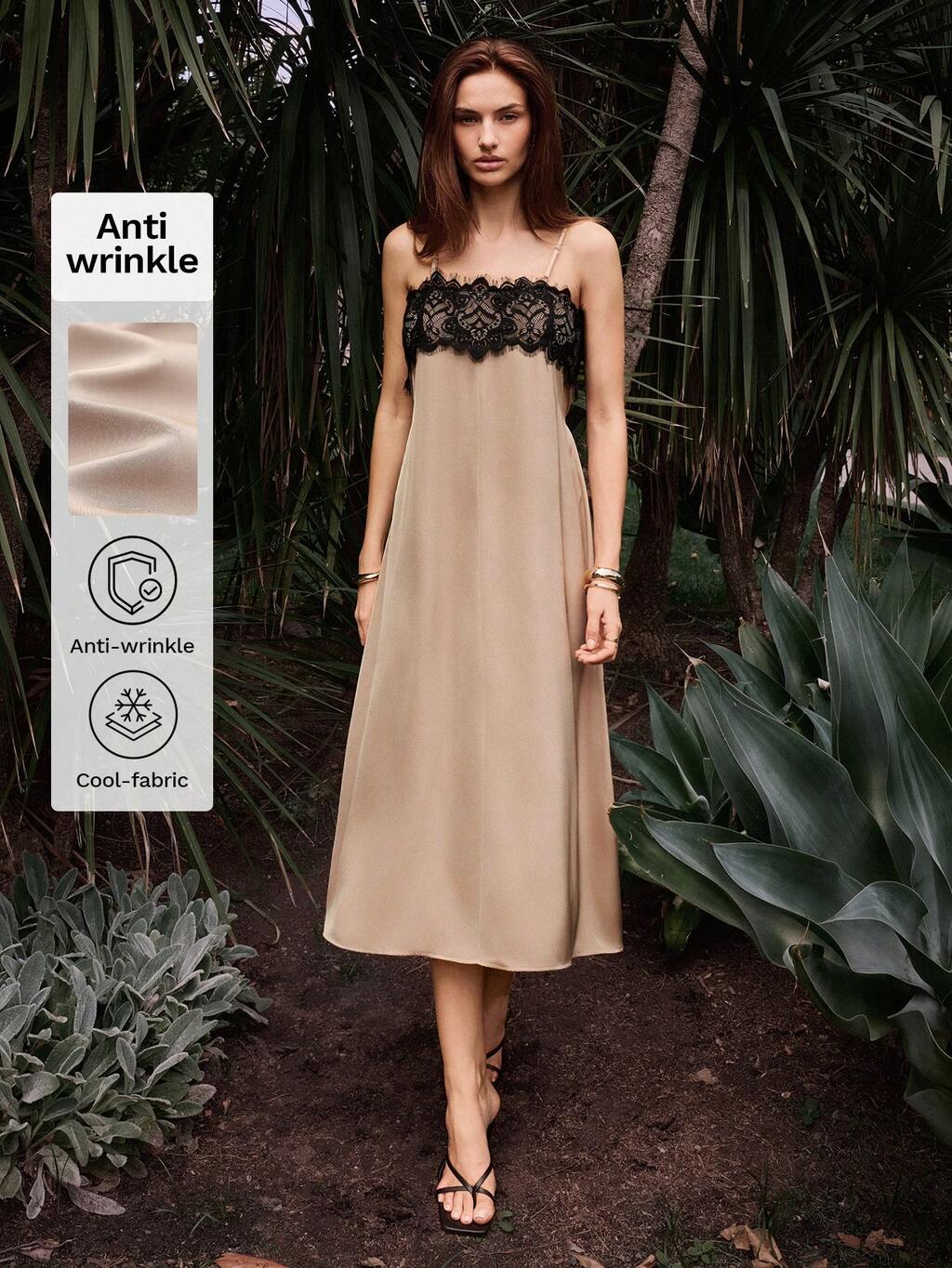 SHEIN Maija Spaghetti Strap Polka Dot Lace Patchwork Women's Slip Dress, Suitable For Valentine's Day Party St Patrick's Day Women Easter Summer Outfits Easter Dress Women Party Top Beach Dress Summer Holiday Outfits Each Vacation Outfits For Women Summer Outfit For Women Going Out Outfits Graduation Graduation Outfit Casual Dresses Casual Blouses For Women