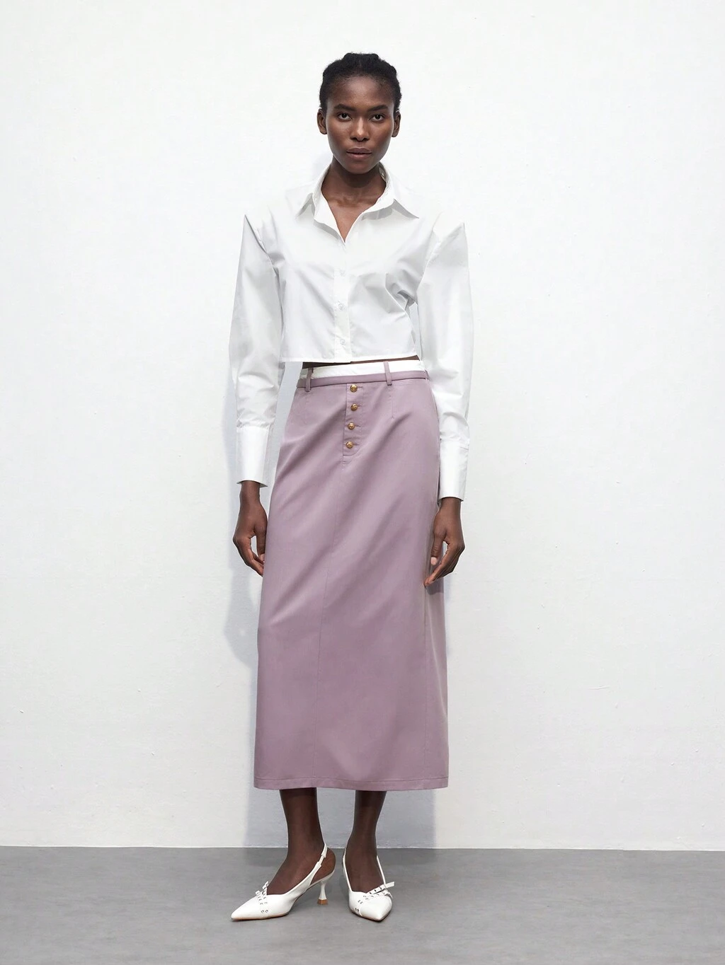 SHEIN Maija Women Autumn Back To School Contrast Color Waistband Splicing Front Closure Metal Button Straight Skirt