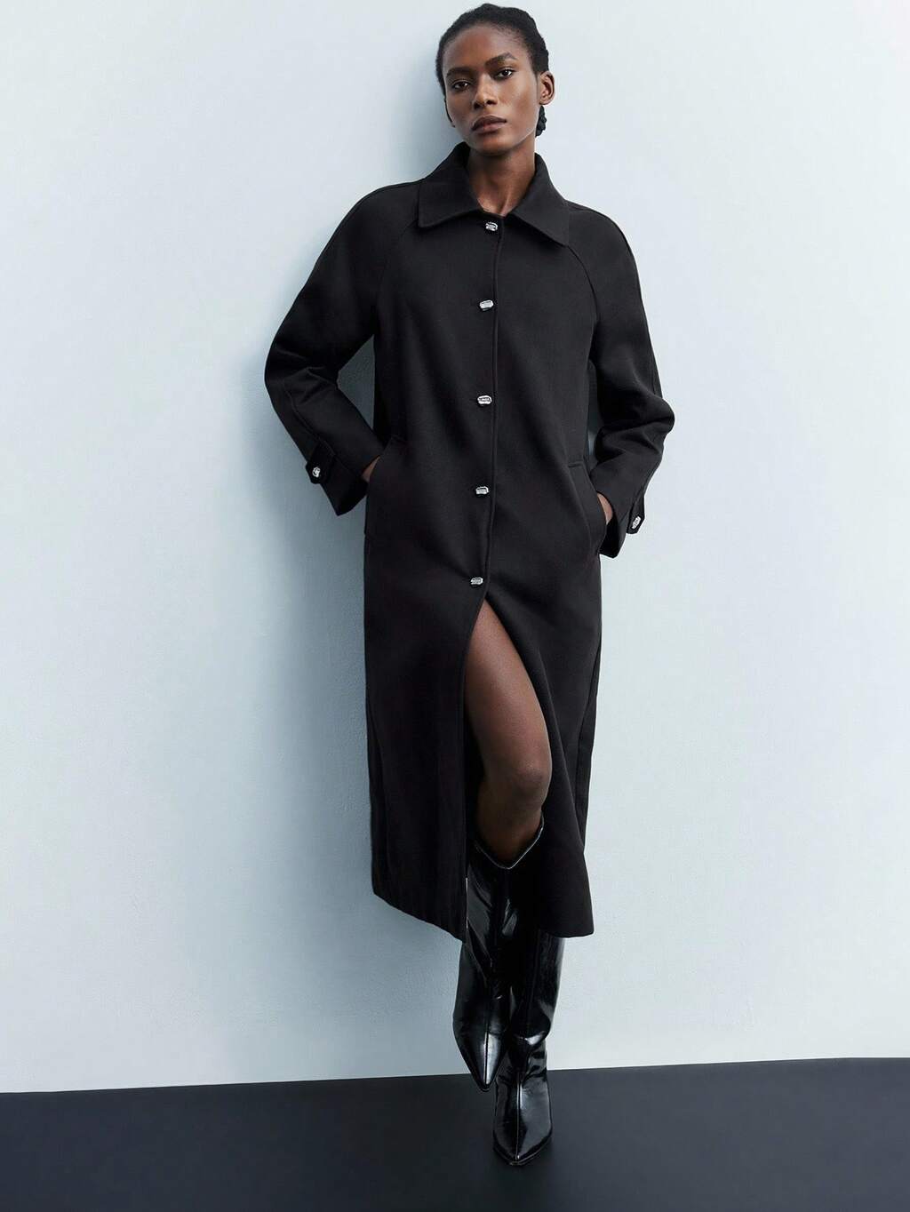 SHEIN Maija Women's Elegant Solid Color Single-Breasted Overcoat Black Coat Winter Clothes