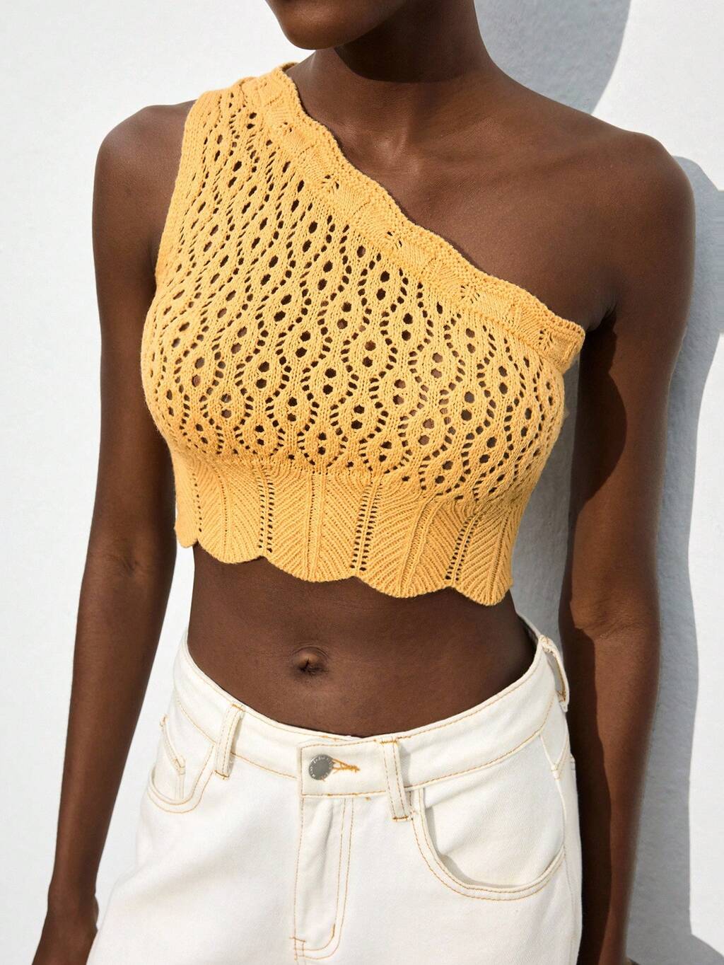 SHEIN Maija Women's Sleeveless Knit Crop Top, Minimalist Fashion Sexy Vacation Style, Solid Color, Textured Knit Fabric, Hollow-Out Design Beach For Women