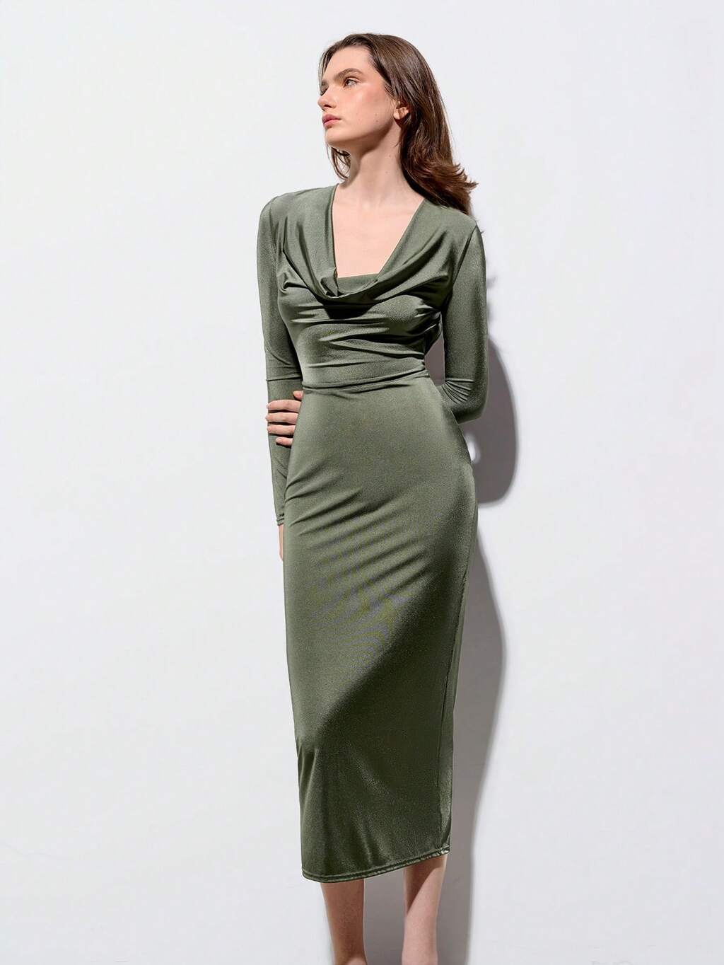 SHEIN Maija Spring And Summer New Style Green Knitted Swing Collar Women's Long Dress, Urban, Modern And Elegant, Sleeveless, Daily Casual Commuting, Suitable For Going Out On Holiday, Holiday Party, Wedding Date Wear