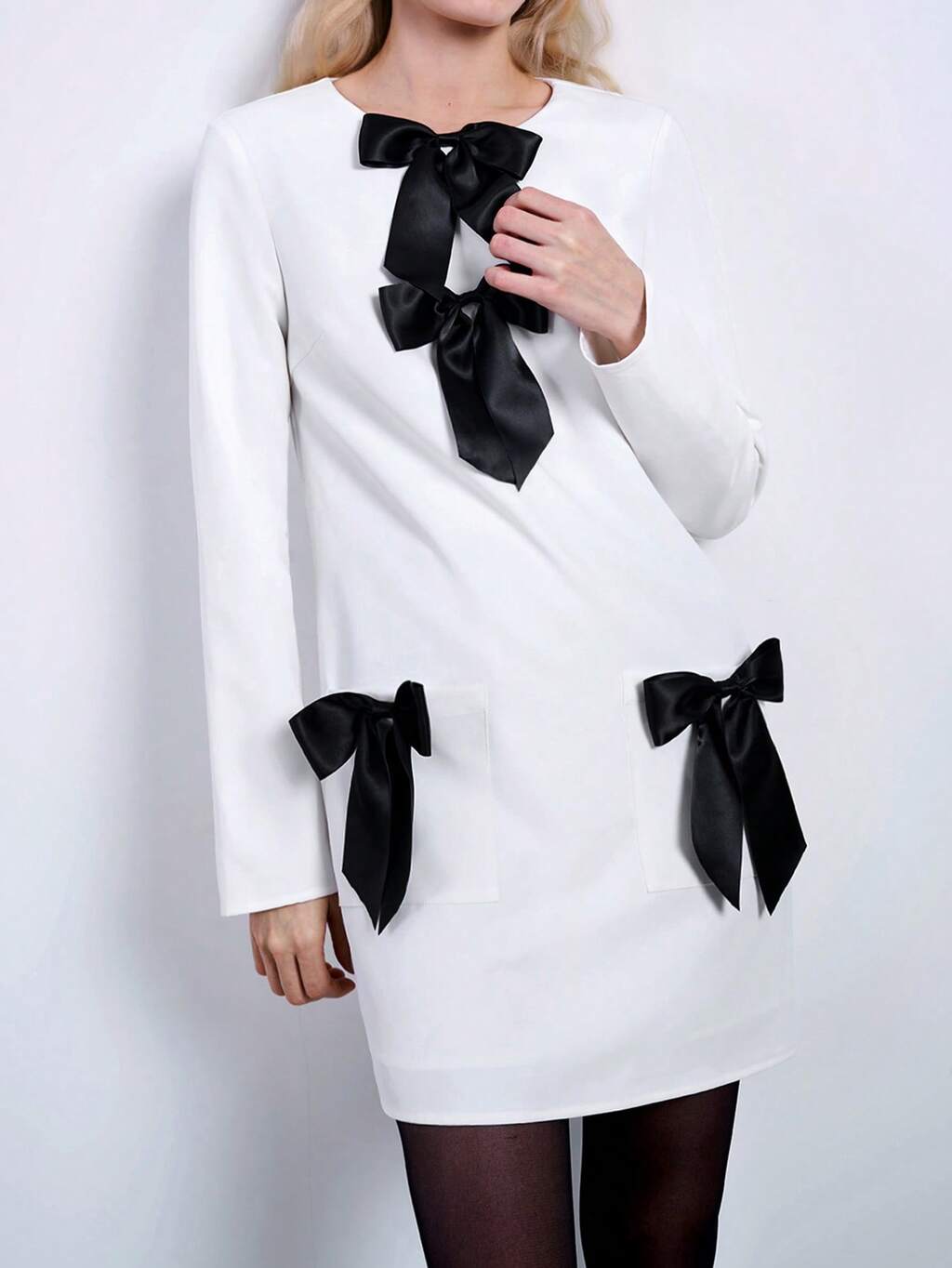 SHEIN Maija Women's Romantic Elegant Contrast Color Bow Decor Long Sleeve Mini Dress, Party/Birthday Outfit Valentines Day,Festival