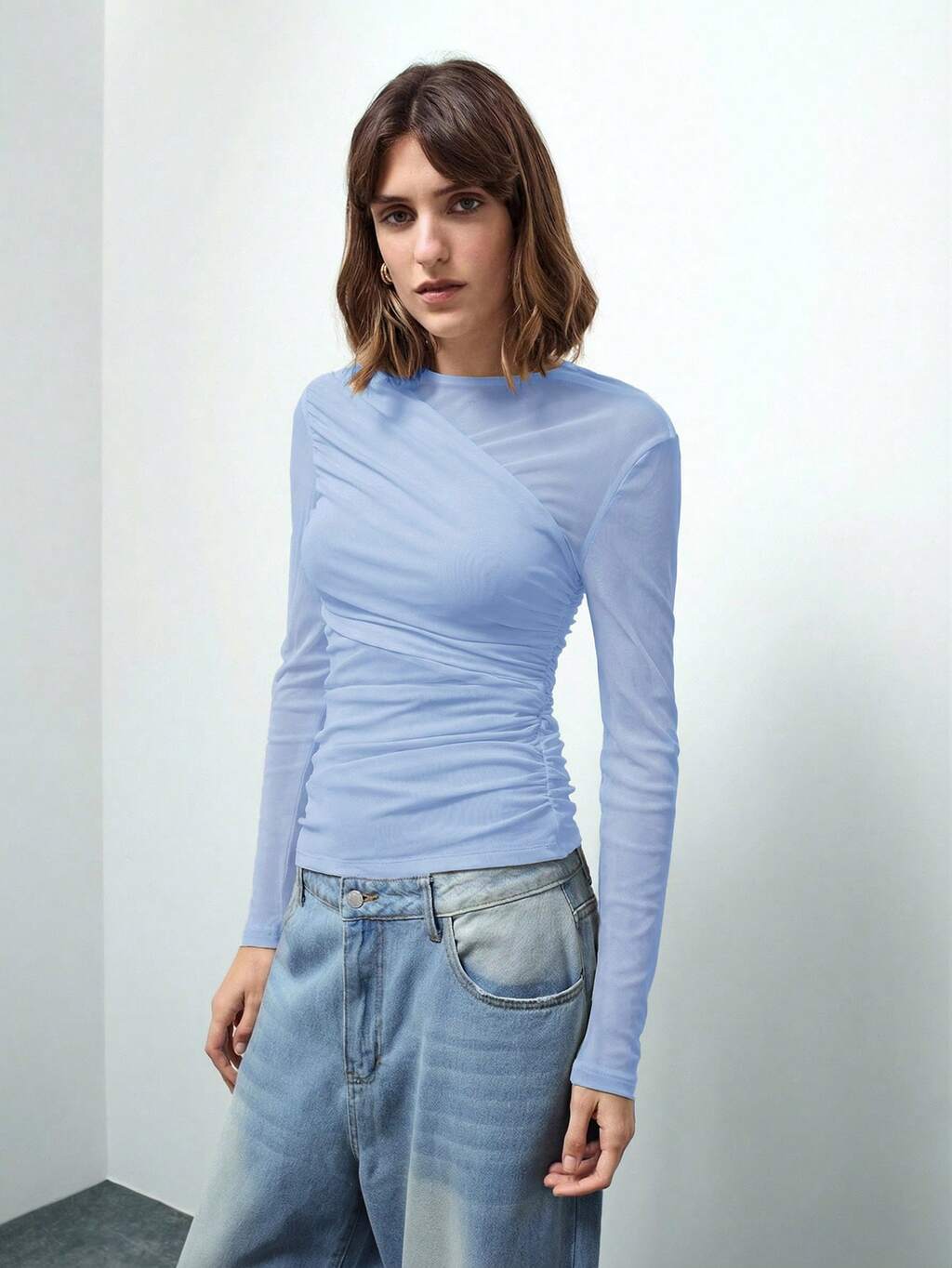 SHEIN Maija Women's Summer Asymmetric Ruched Sleeveless Casual Top, Solid Color Office Wear St Patrick's Day Women Easter Summer Party Top Beach Summer Holiday Each Vacation For Women Summer For Women Going Out Graduation Casual Top For Women