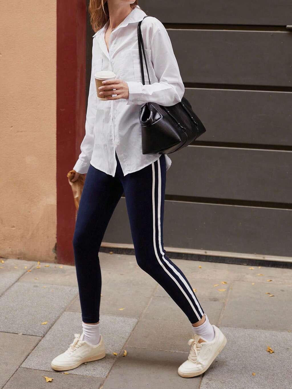 SHEIN Maija Women's Contrast Color Skinny Fit Leggings With Side Stripe, Versatile & Stylish, Suitable For All Seasons Hippie