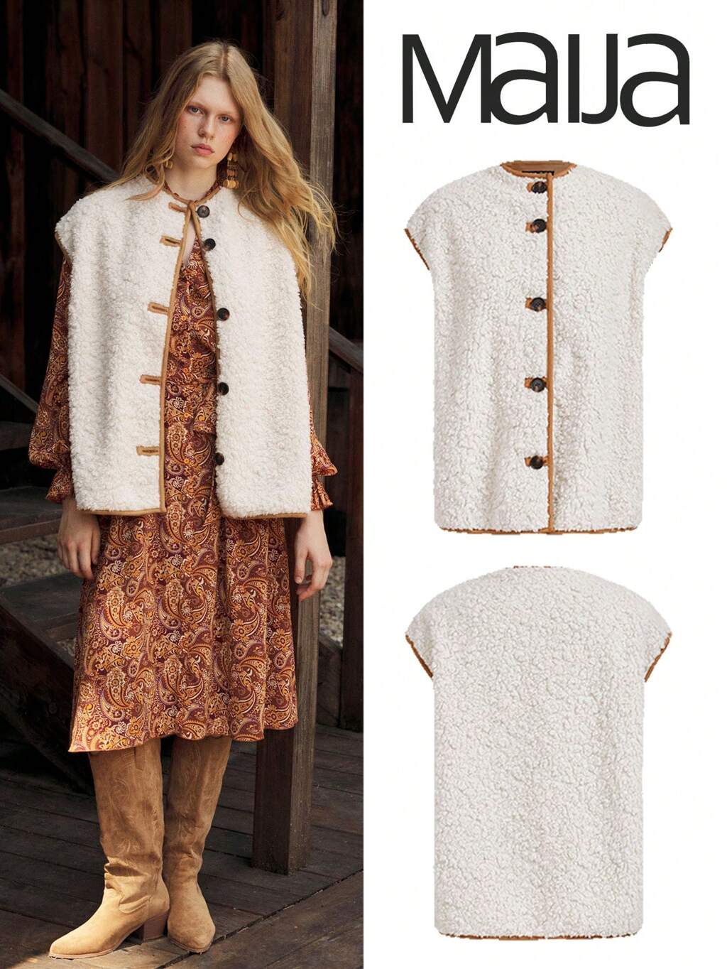 SHEIN Maija Women's Plain Single-Breasted Loose Fit Faux Shearling Jacket, Autumn/Winter