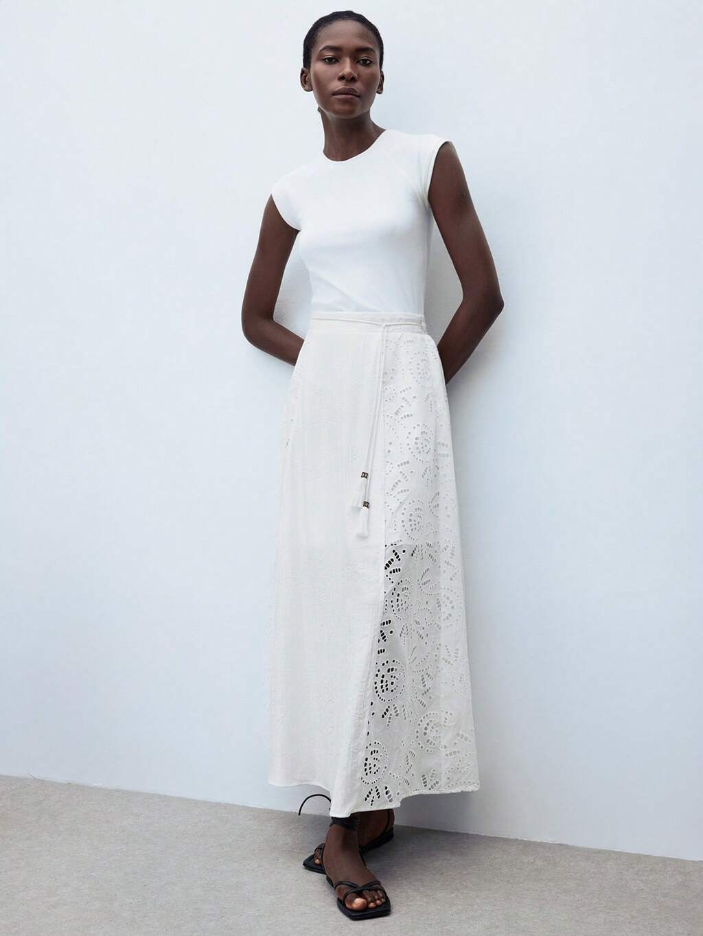 SHEIN Maija Women's Elegant & Fashionable White Summer Skirt, Simple & Comfortable Lace-Up & Fringe Hem Design, Beach Cover-Up, Skirt, For Vacation