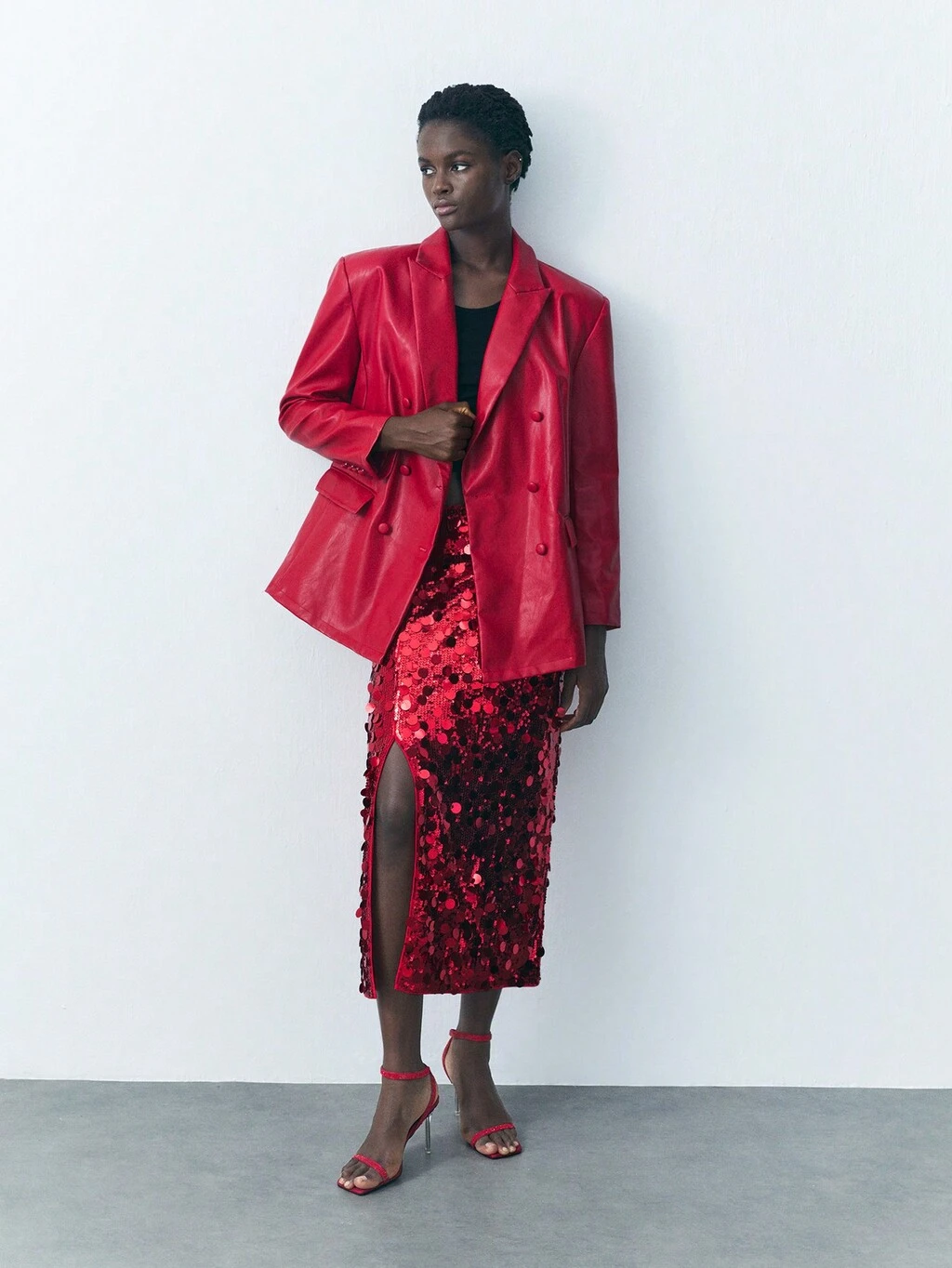 SHEIN Maija Women's Sequin Fitted Split Design High-Quality Skirt For Women Elegant