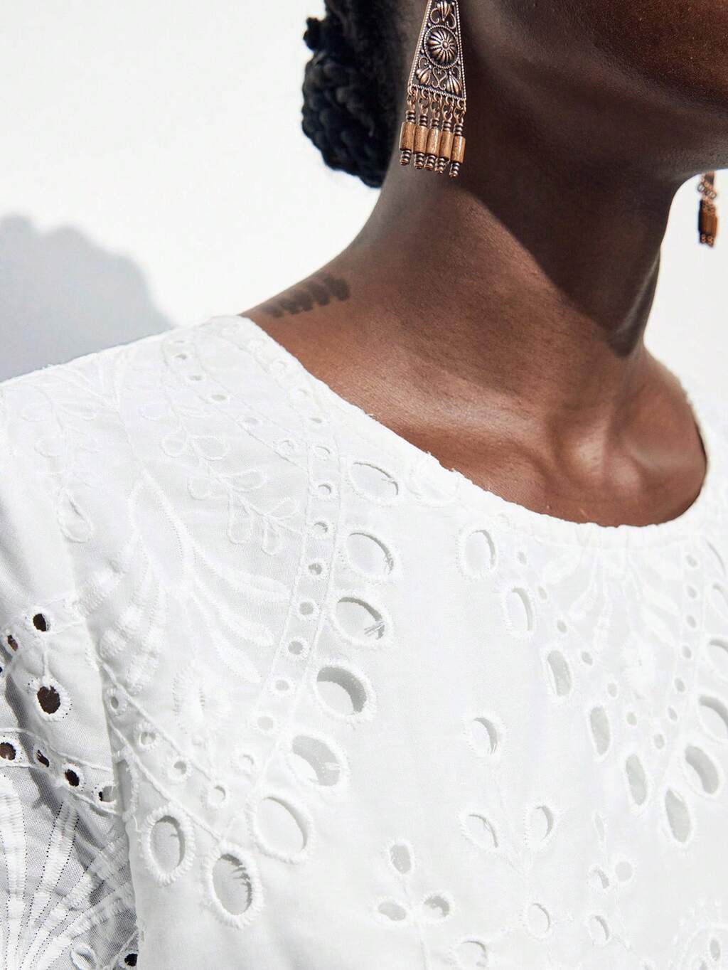 SHEIN Maija Women Casual Loose Solid Color Long Sleeve Dress, Minimalist Style For Daily Wear Eyelet Dress Women Eyelet Blouse Crochet Cover Up Dress White Beach Cover Up Women White Modern Vacation Nomadic Casual Fashion All-Match Women's Country Concert Western Style Women's Nomadic Style Bohemian High-End Elegance All-Match Country Concert Modern Holiday Fashion Design, Comfortable Beach Beach, Bohemian Style Business Casual Women's Office Wear Western Style Clothing, High-Grade Fabric, Comfortable