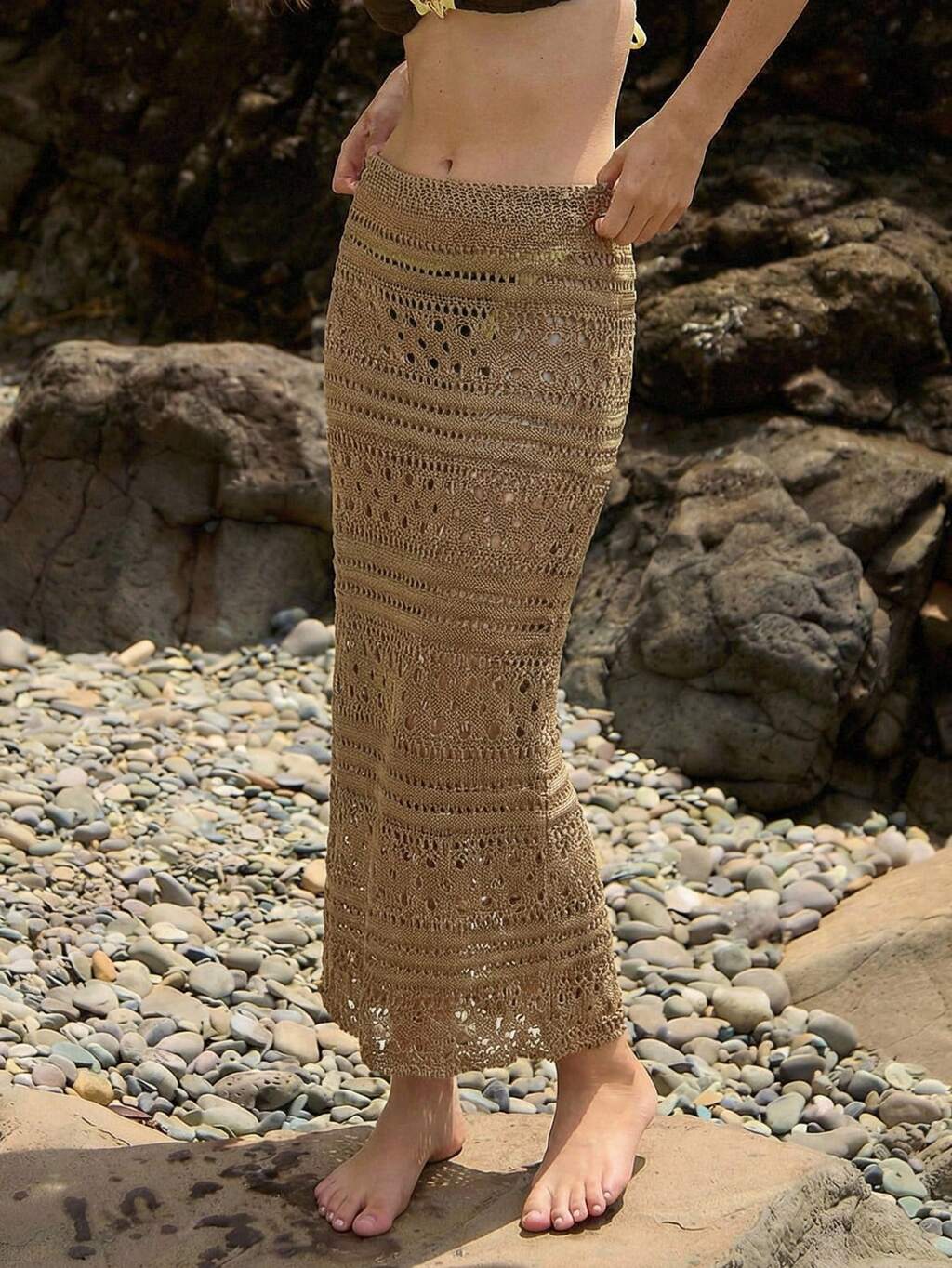 SHEIN Maija Jednokolorowa damska dzianinowa narzutka z wycięciami na plażę/ośrodek wypoczynkowy