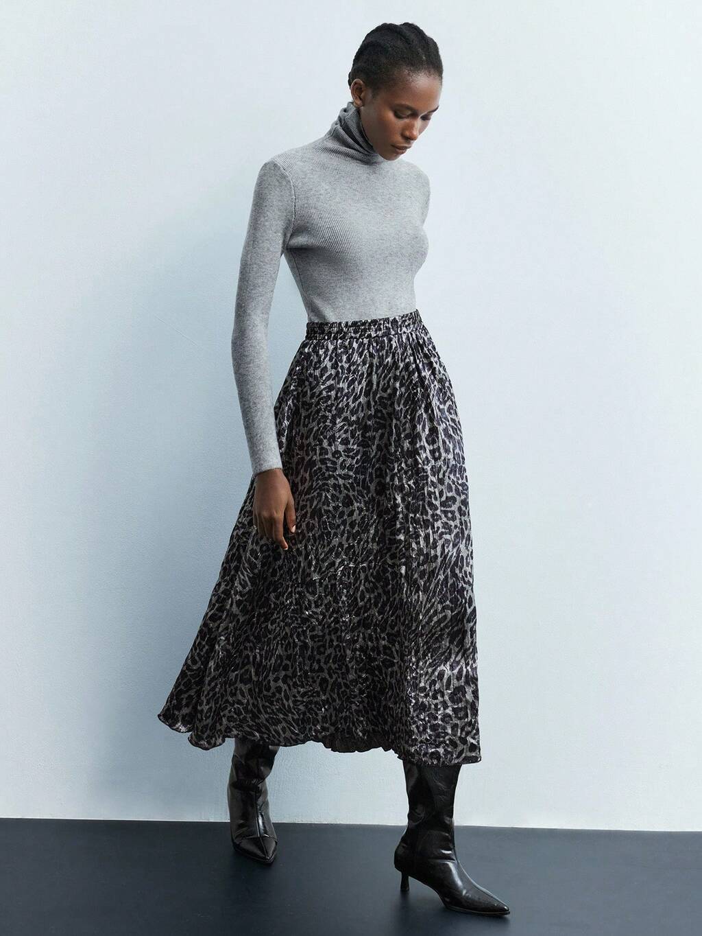 SHEIN Maija Spódnica damska z nadrukiem w panterkę, luźna, jesienna