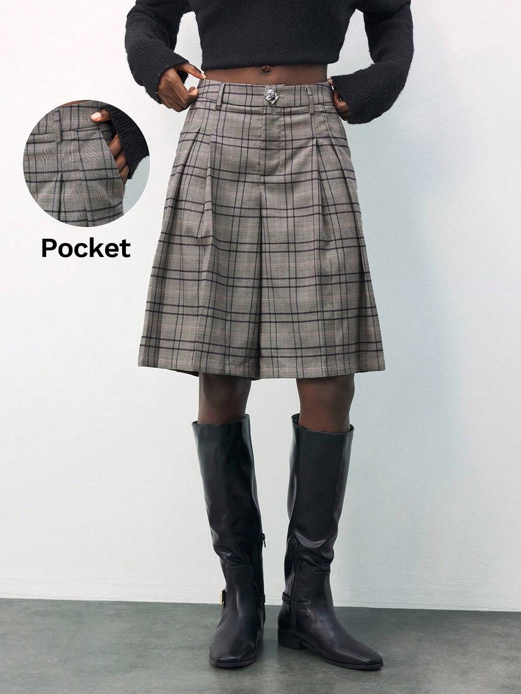 SHEIN Maija Damskie spodnie w kratę retro, luźne, z szerokimi nogawkami
