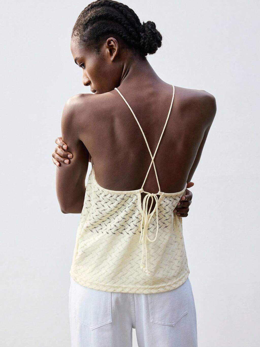 SHEIN Maija Damski lekki morelowy, wycięty, krzyżowy, bezrękawnik z dzianiny typu halter, nowoczesny styl boho, uniwersalny i wygodny, luźny krój, wiosna