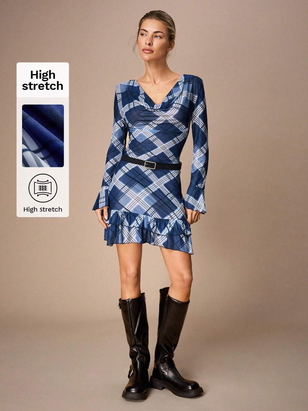 SHEIN Maija Letnia modna sukienka mini z cekinami w kratę