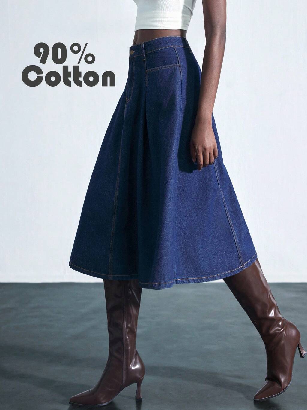 SHEIN Maija Damska plisowana spódnica jeansowa na co dzień/do biura