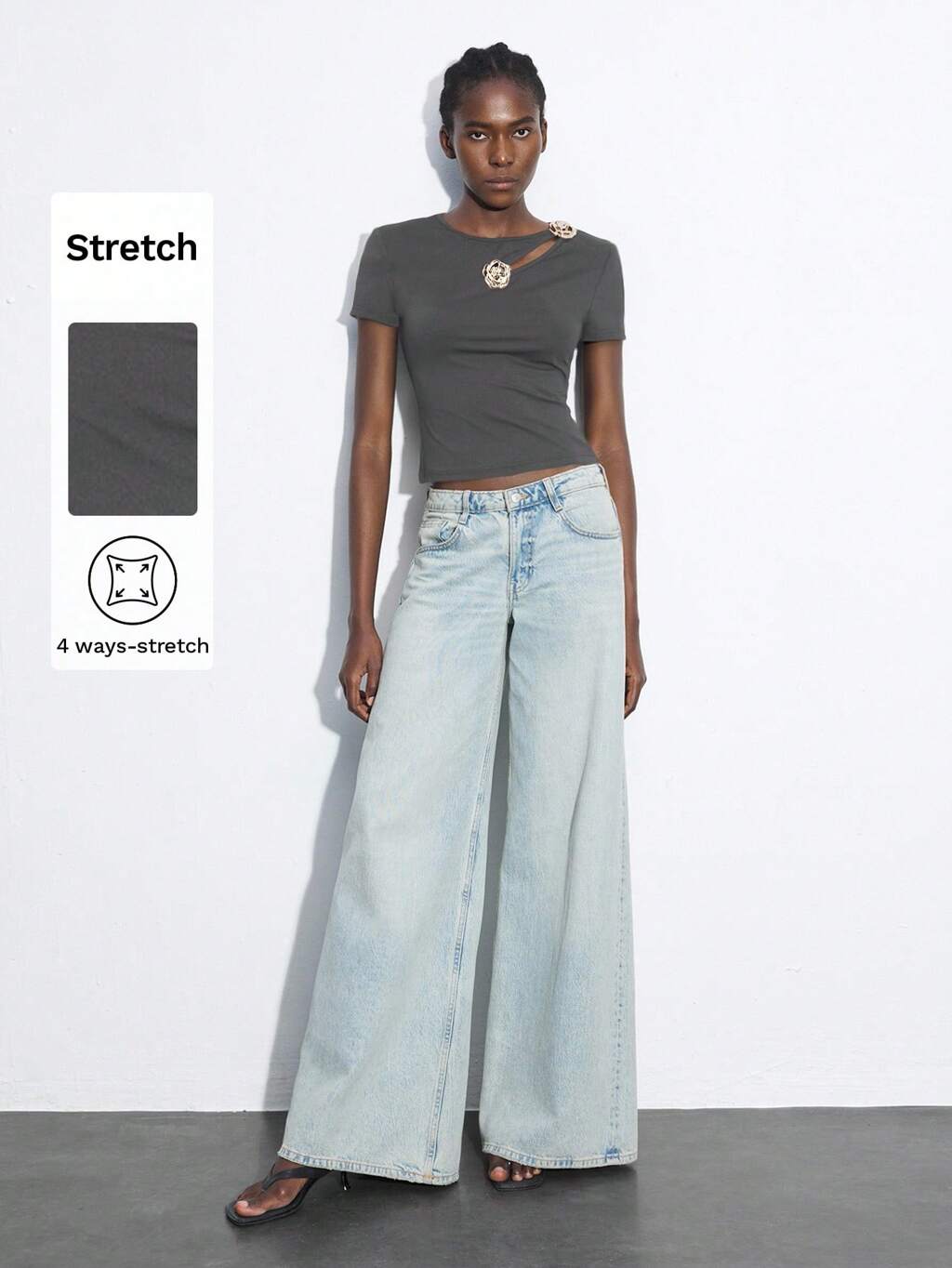 SHEIN Maija Damskie białe metalowe 3D kwiatowe dekoracje z odkrytymi ramionami, wydrążone w talii, proste eleganckie seksowne modne koszulki na wyjścia, imprezy, święta