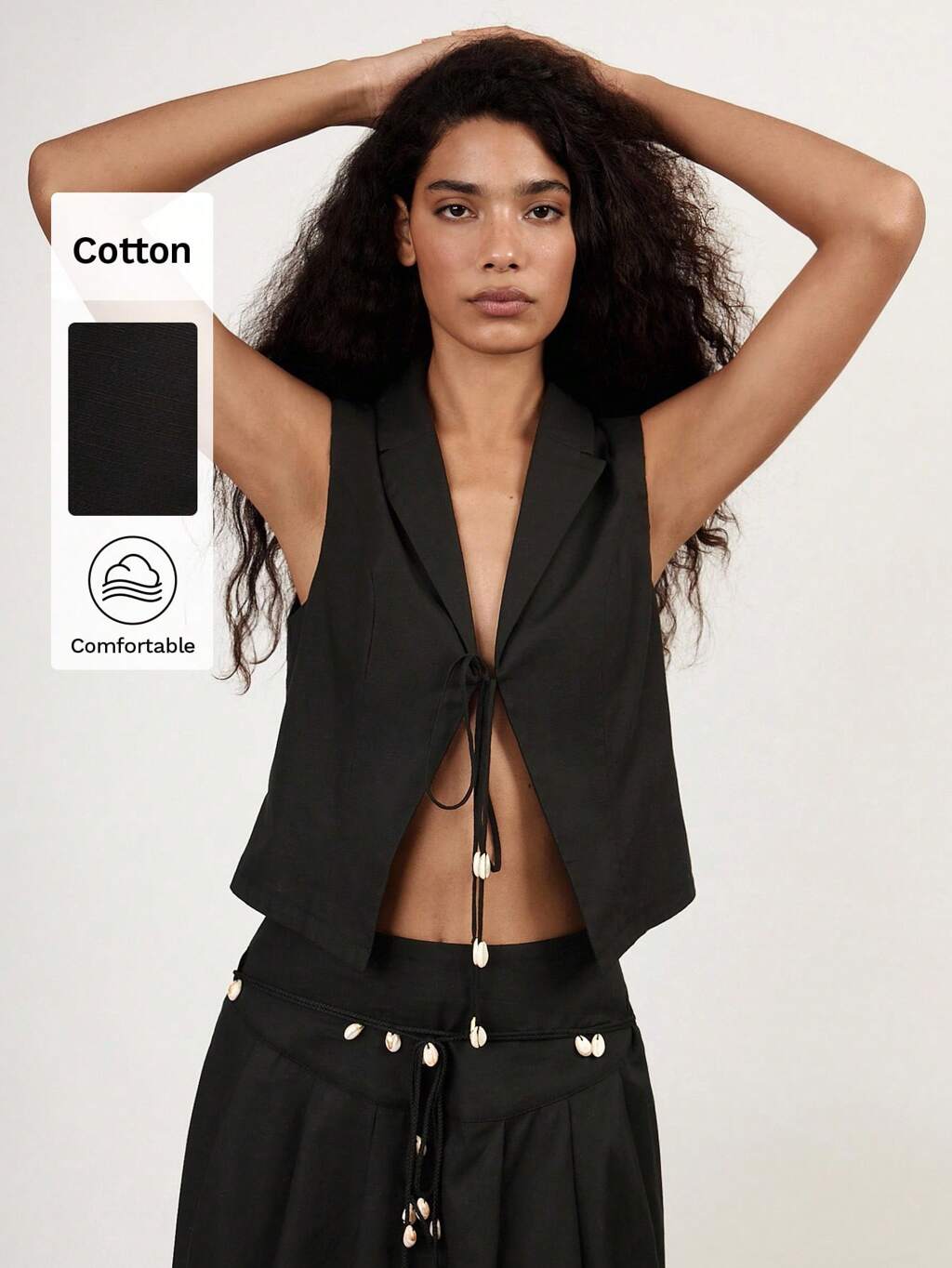SHEIN Maija 2025 Lato Nowy Przedni Guzik Metalowy Dekor Muszla Ślimak Morski Kokarda Wiązany Bez Rękawów Czeski Ukończenie Szkoły Muzycznej Festiwal Plażowy Wakacje Swobodny Romantyczny Miejski Strój Wakacyjny Odpowiedni Na Wyjścia, Imprezy, Wesela, Ubrania Gościnne - 2-częściowy Zestaw Damski