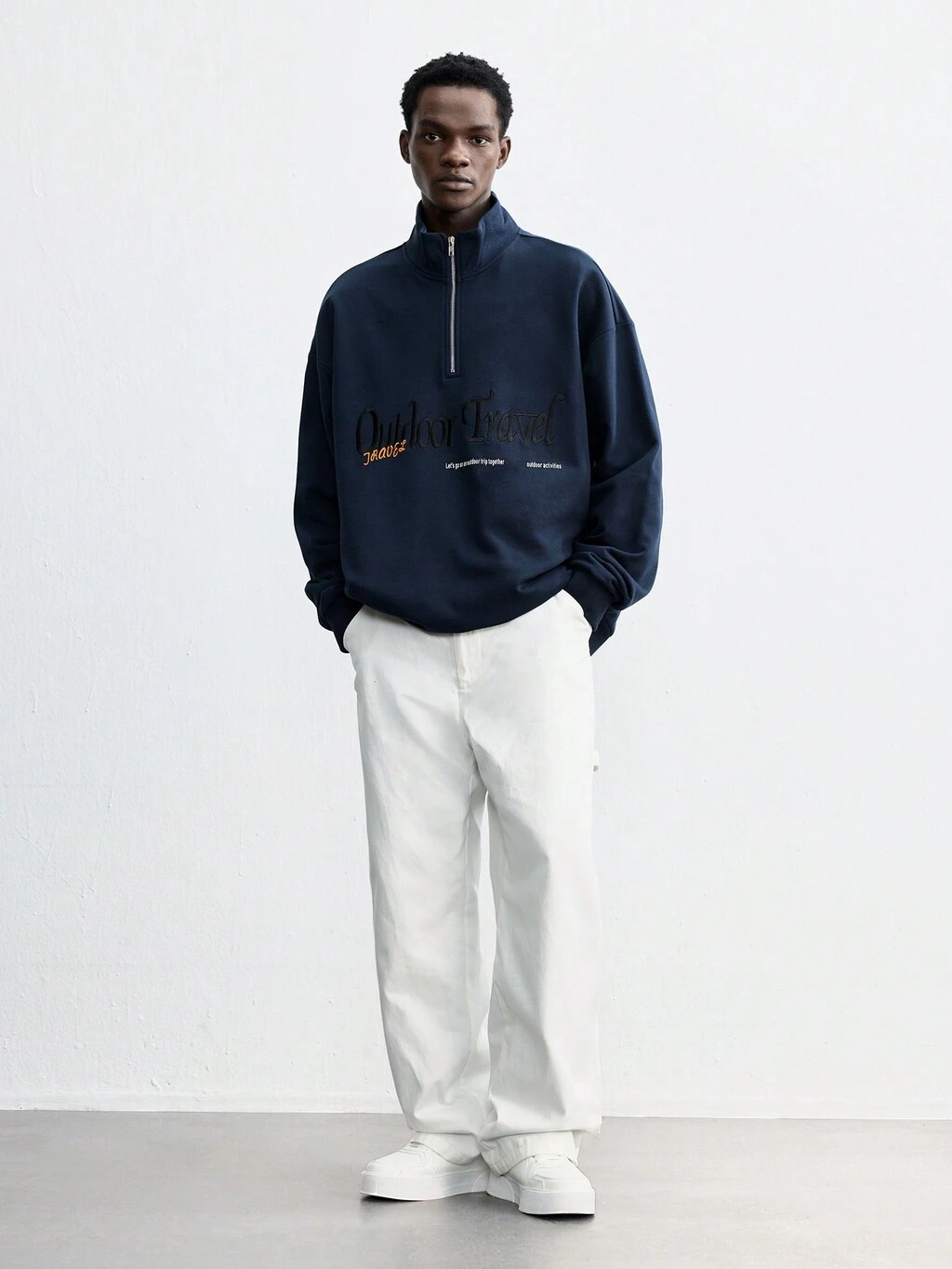 SHEIN Maija Męska bluza zimowa z haftowanym napisem, oversize, z długim rękawem i odkrytymi ramionami, z zamkiem błyskawicznym, swobodna, spersonalizowana, uniwersalna, minimalistyczna, odpowiednia na Boże Narodzenie, Nowy Rok, Walentynki i randki