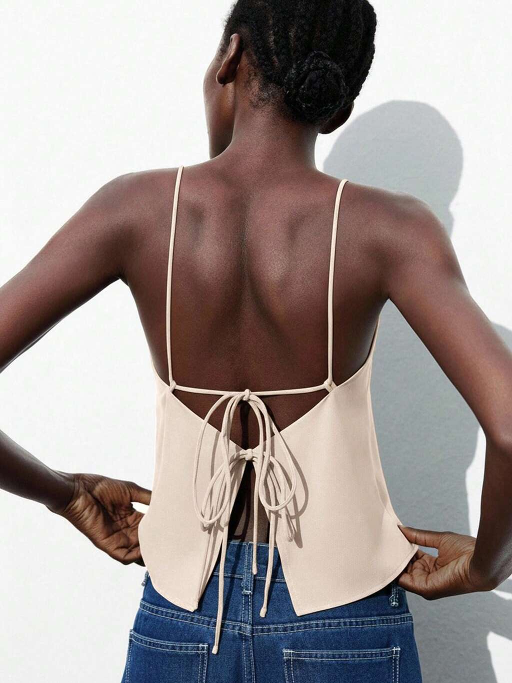 SHEIN Maija Regata Elegante de Cetim com Amarração na Frente e Costas Abertas MAIJA Verão