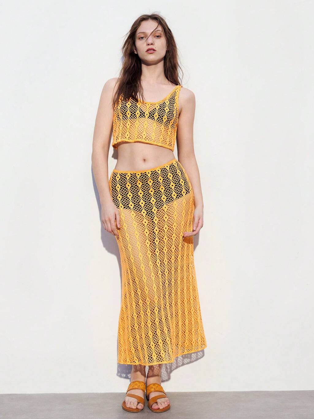 SHEIN Maija Conjunto de duas peças de malha transparente com vazado liso para férias