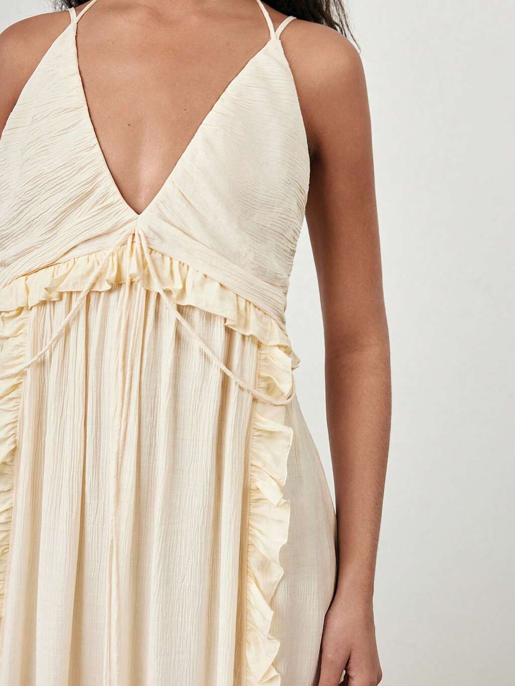 SHEIN Maija Regata Casual de Férias com Decote Halter, Babado e Detalhe de Concha em Cor Sólida para Mulheres